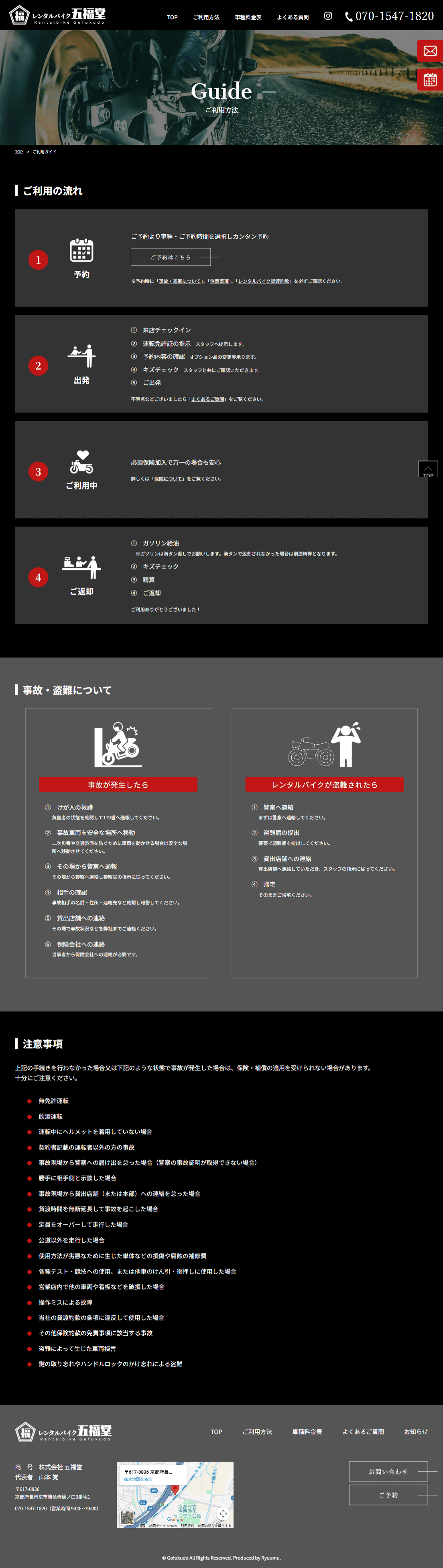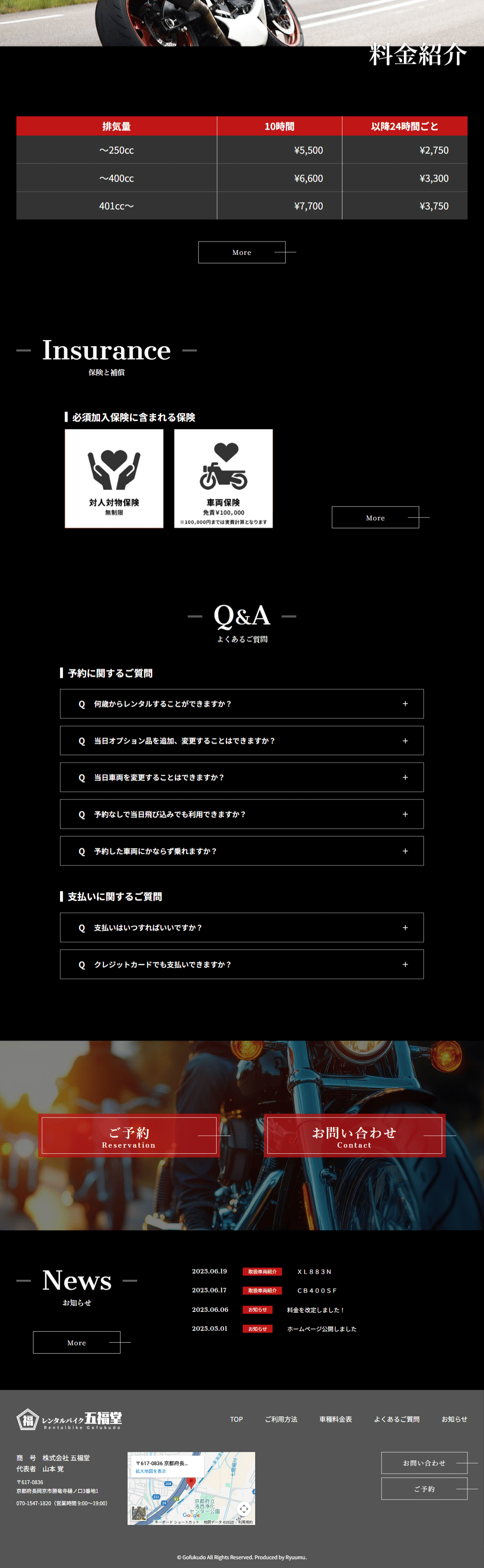 京都・長岡京市でレンタルバイク事業を展開されている五福堂様のWEBサイトを制作いたしました。