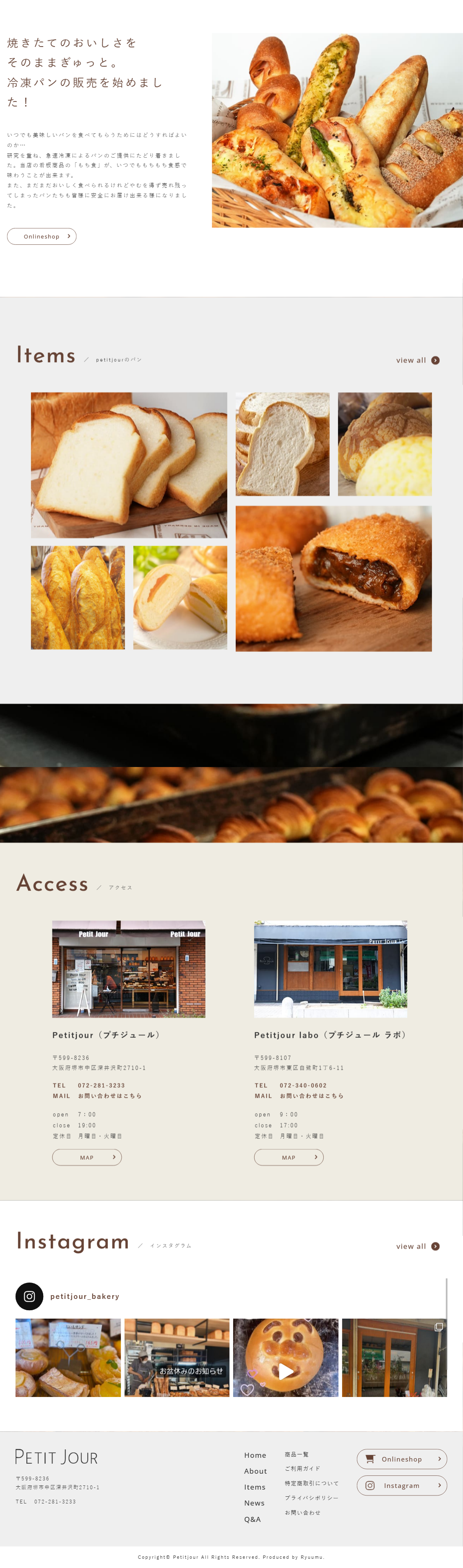 大阪の堺市でパン屋を営んでおられるPetitjour(プチジュール)様のホームページをリニューアルいたしました。